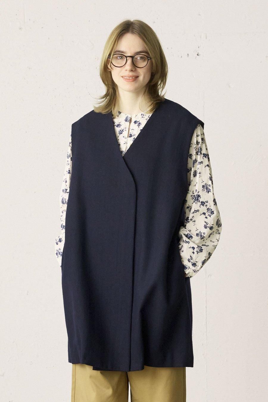 原料から紡績も全て国内で仕上げたツイード素材を使用したワイドベスト。