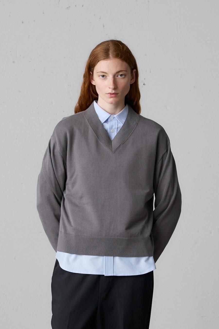 コンパクトなシルエットで、すっきりとした印象に仕上げたVネックニットプルオーバー。