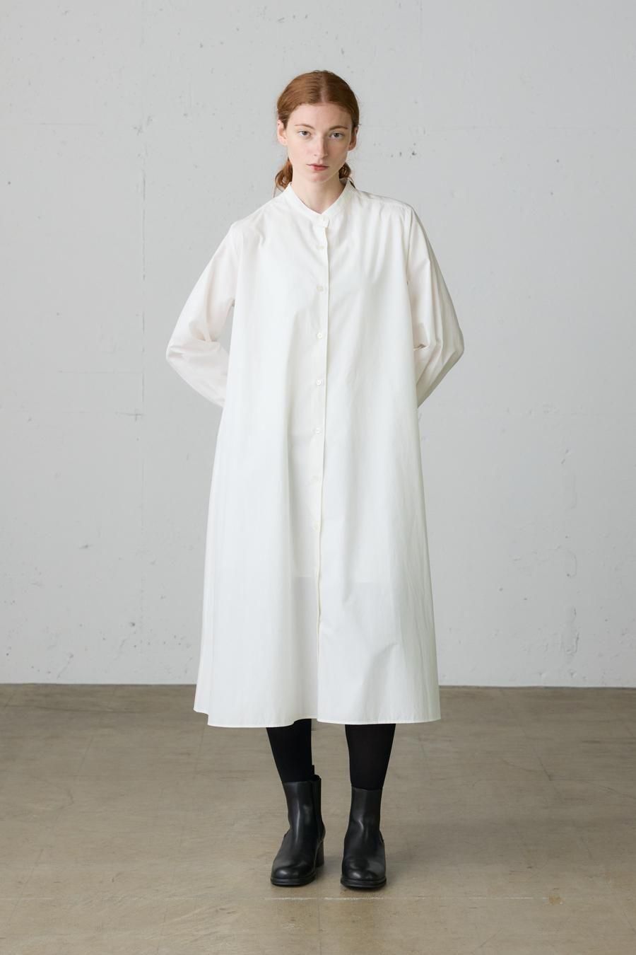 バンドカラーのデザインが全体をすっきりとまとめ、ボタンを開ければ軽い羽織りとしても活躍します。
