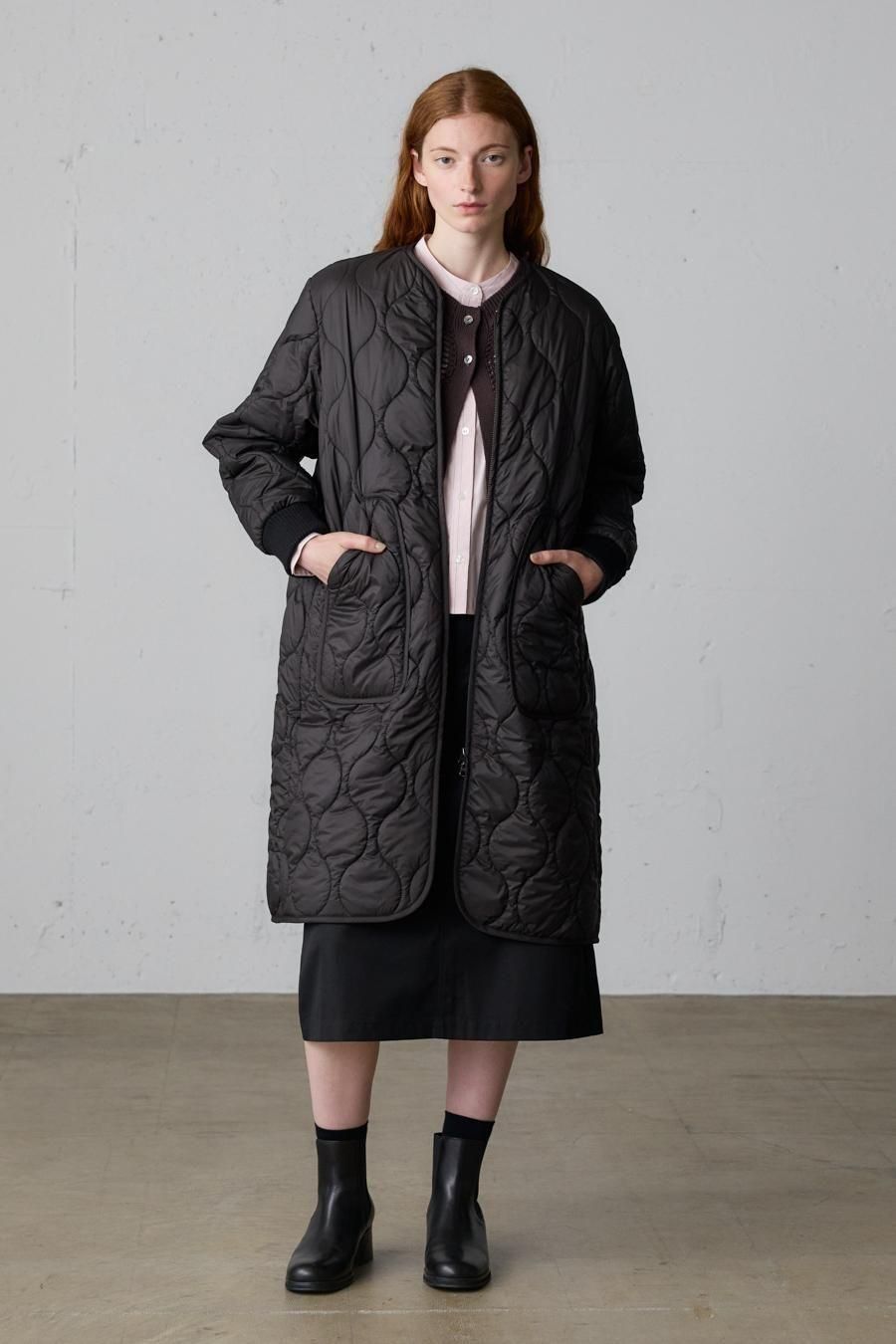 取り扱いやすさと軽さが魅力の、ポリエステル中綿を使用したキルティングコート。